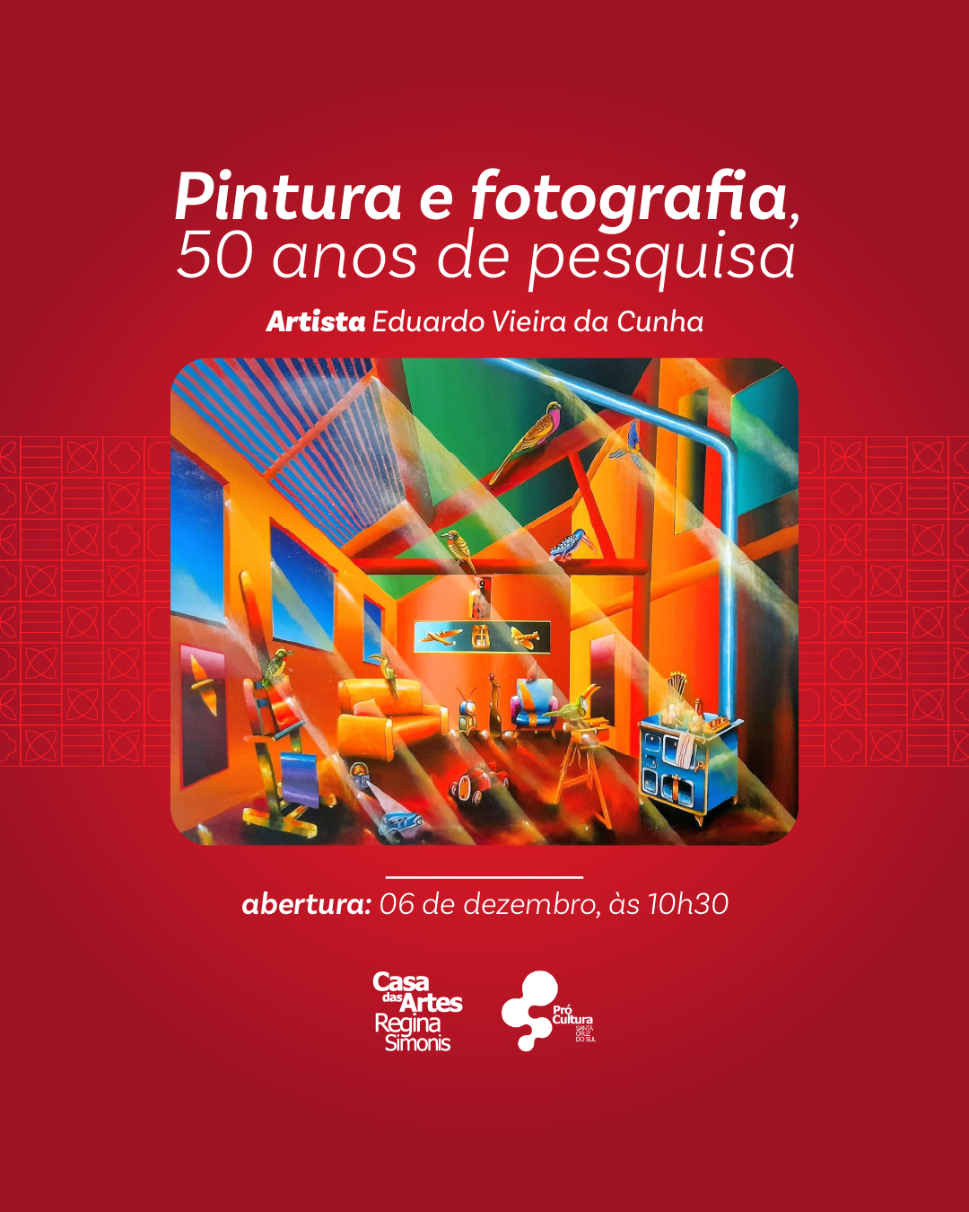 “Pintura e fotografia, 50 anos de pesquisa” Artista Eduardo Vieira da Cunha Abertura da exposição 6 de dezembro às 10h30